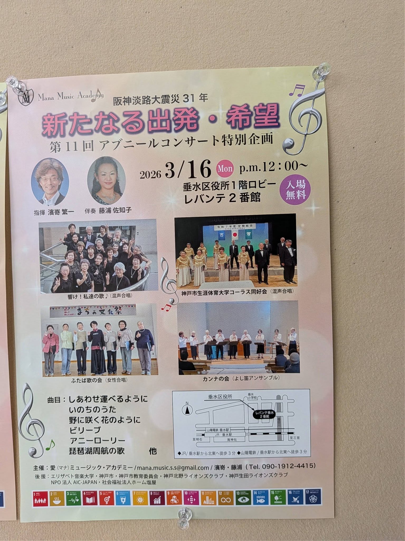 垂水区役所の1階で開催された「新たなる出発・希望」アブニールコンサートを鑑賞させて頂きました。