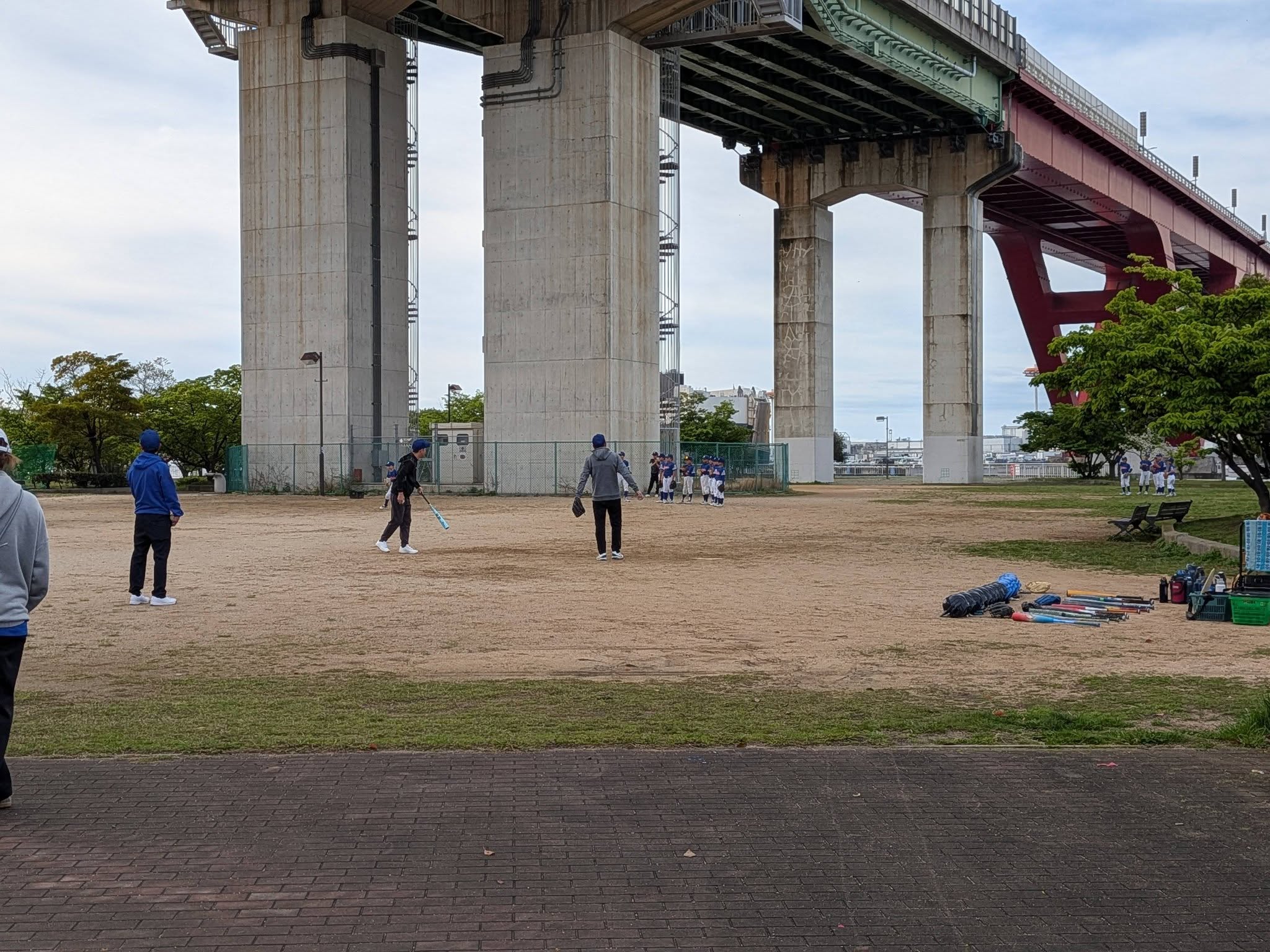 本日4/5、恒例の灘浜緑地公園清掃活動をしましたが、8:00〜少年野球の練習も始まっていました。