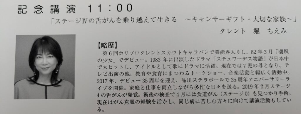 堀ちえみさんの講演「ステージⅣの舌がんを乗り越えて生きる〜キャンサーギフト・大切な家族〜」も、心に突き刺さりました。😢