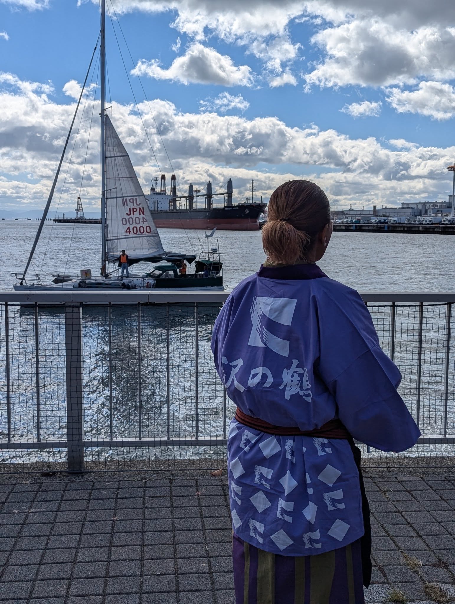 本日11/3、灘西郷の樽酒🍶を積んで東京に運ぶヨット⛵が出港し、それを灘浜緑地公園の岸壁から「酒造り唄」を聴きながら見送りました。