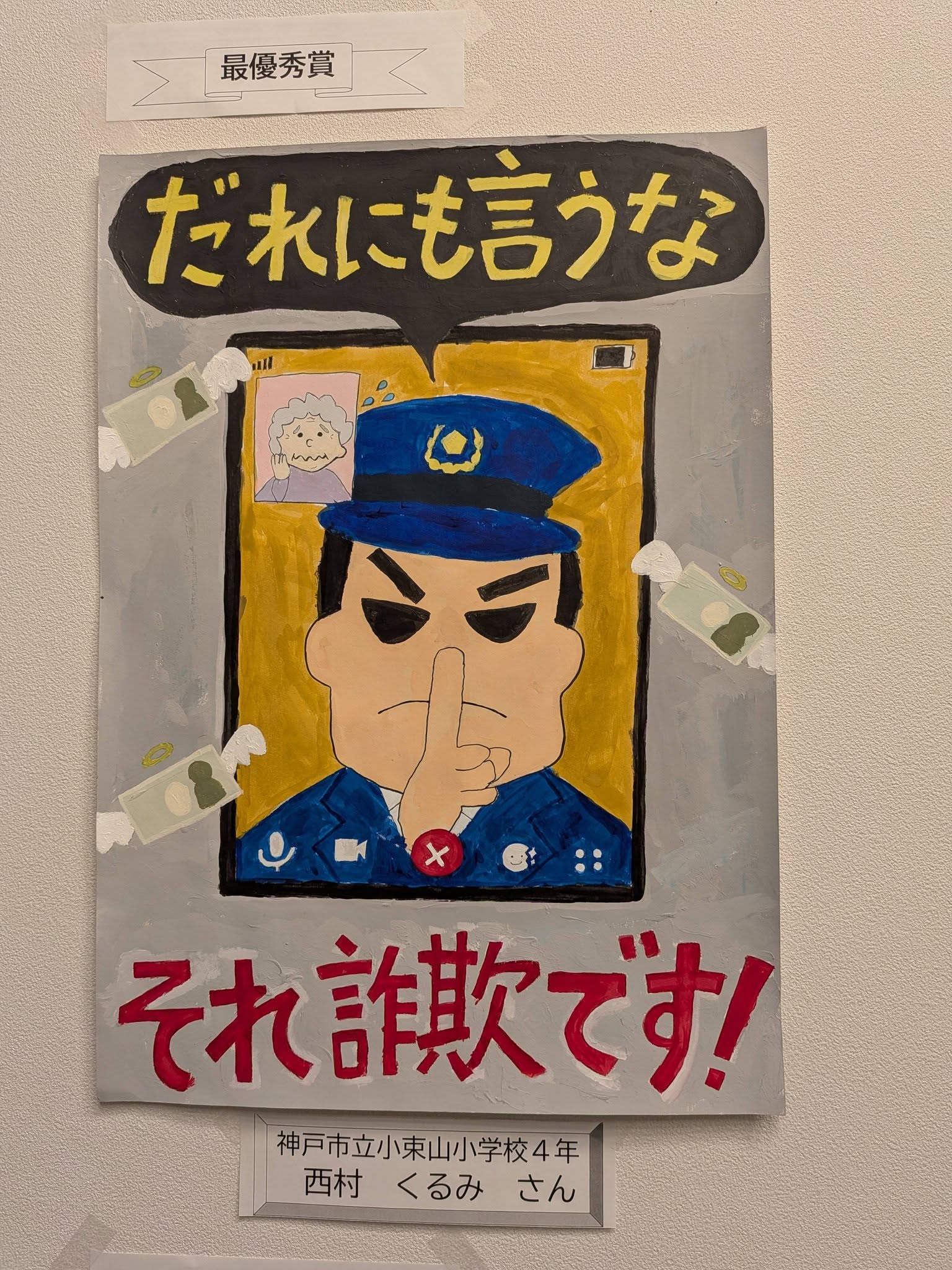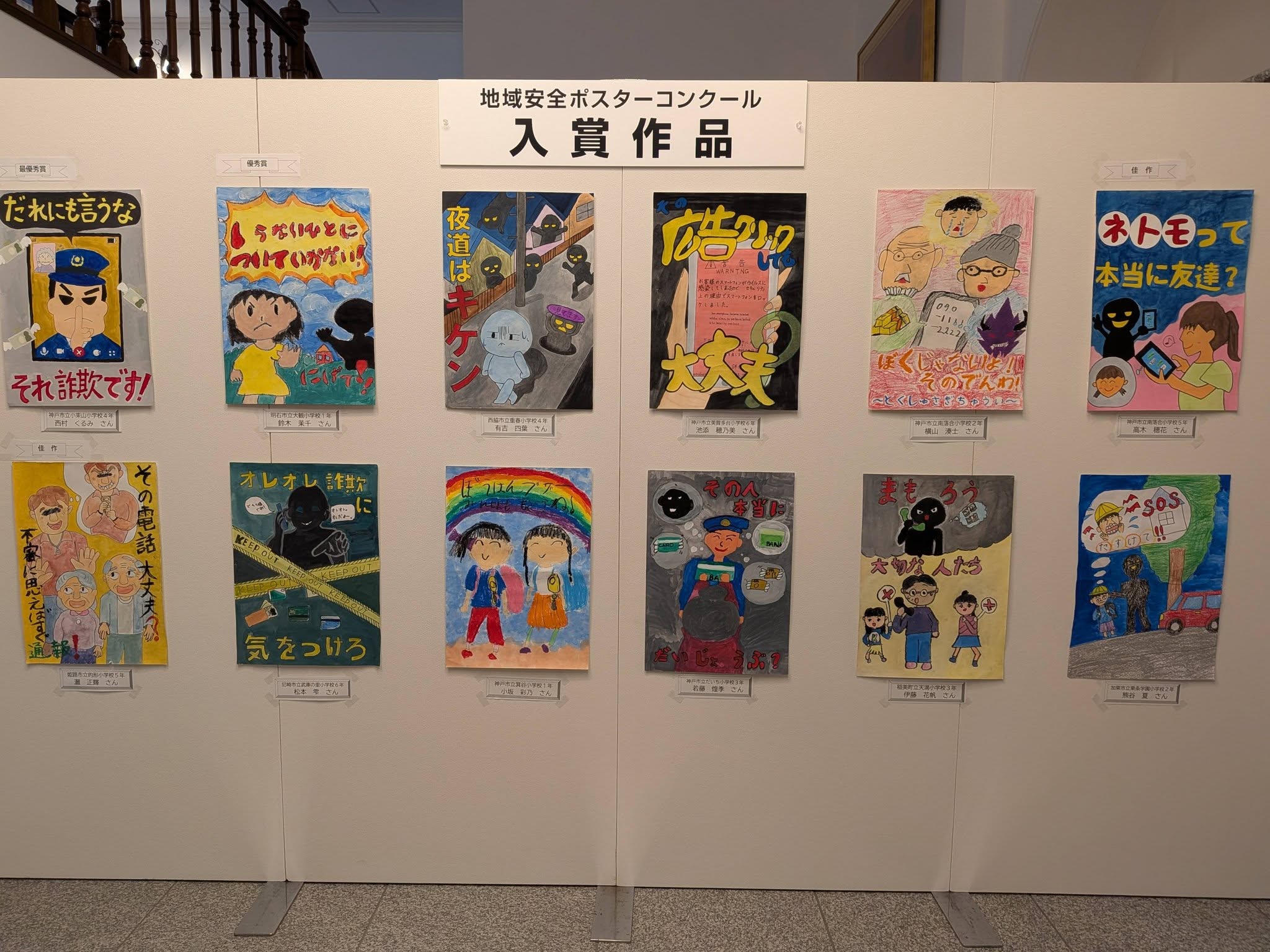 ◆「犯罪から自分を守ろう」等をテーマにして、兵庫県内の小学生から488点の応募があった中から選ばれた12作品の表彰が行われました。